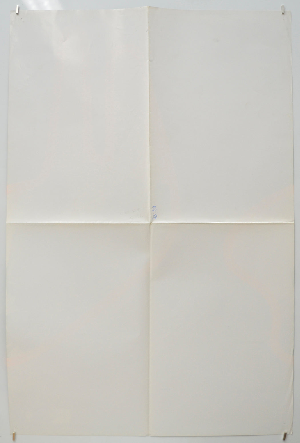 7 cm diagonal crease and two smaller creases across both left corners, light 5 cm diagonal crease across both right corners, two pinholes near every corner, very mild fold wear including some white stress marks on the fold lines, the title has been written on the back in blue pen (only noticeable on the front if the poster is held up to the light / backlit), otherwise good.