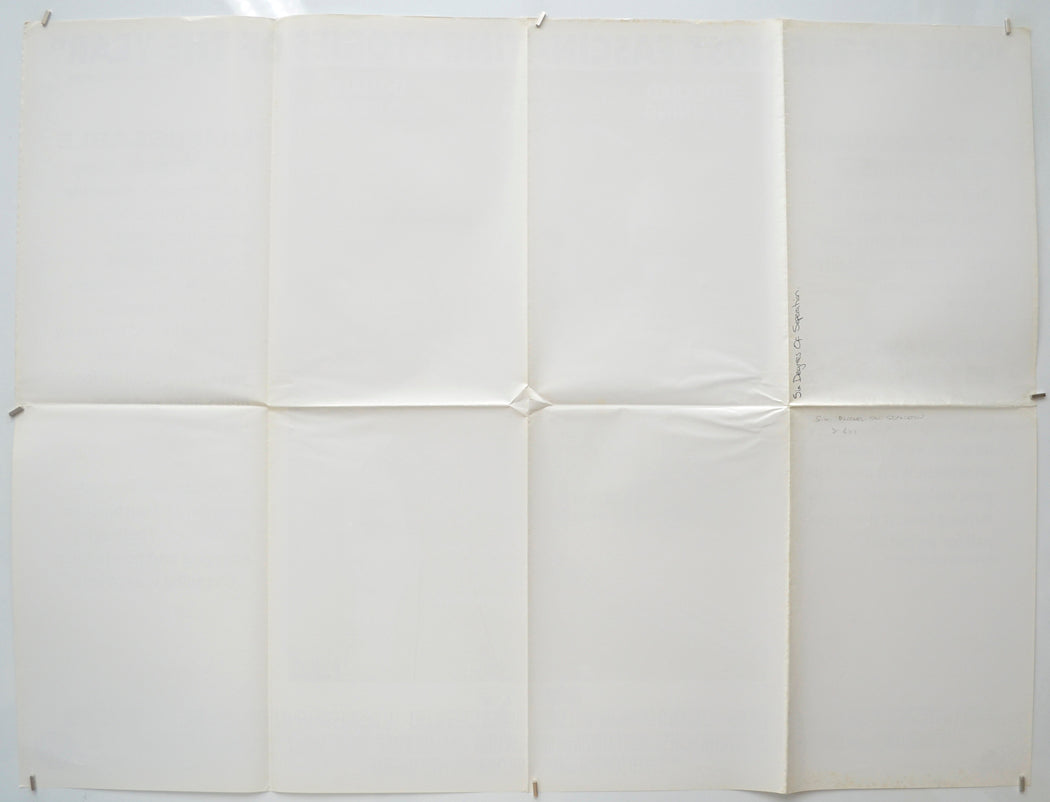 Extremely mild creasing on the top and right edges, tiny crease across the tips of the top corners, extremely slight yellowing to the fold lines and edges, very mild fold wear (creasing around the intersections), the title has been written on the back in black pen and there are some faint specks of damp on and around the back of the left vertical fold line and the back of the left half of the center horizontal fold line and bottom edge (only noticeable on the front if the poster is held up to the light / backlit), otherwise very good.