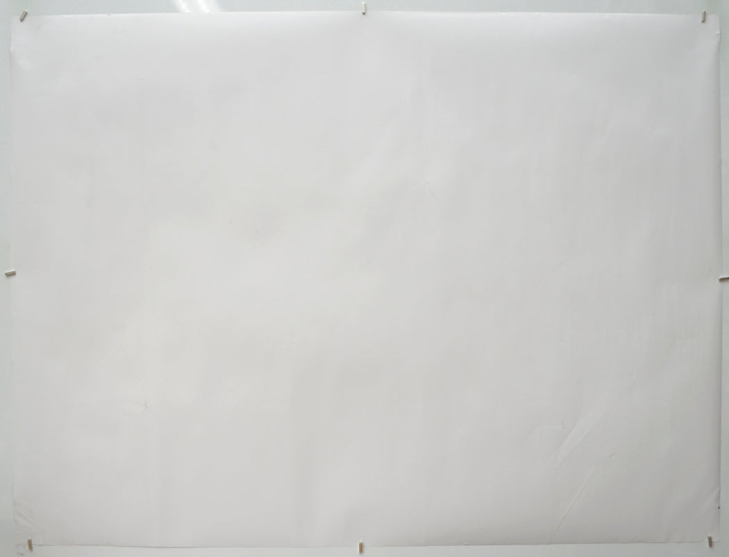 Very light 6 cm diagonal crease across the top left corner along with a couple of tiny surface creases, very light 7 cm diagonal crease across the bottom right corner, tiny tear and very mild creasing on the bottom edge, 4 cm diagonal crease across the bottom left corner, tiny tear near the bottom of the left edge (a tiny edge piece is hanging by a thread within the tear), a couple of tiny spots of edge wear on the left edge, 12 cm diagonal white crease/score line in the black background at the bottom left along with approximately 3 smaller crease lines in the coloured bands above it, surface creasing near the left edge including some white stress marks within the A’s, a couple of tiny white surface creases near the right edge, five light vertical roll creases evenly spaced across the bottom of the poster, three tiny indentation dots near the top of the right edge, two tiny pinholes near the bottom right corner, otherwise good.
