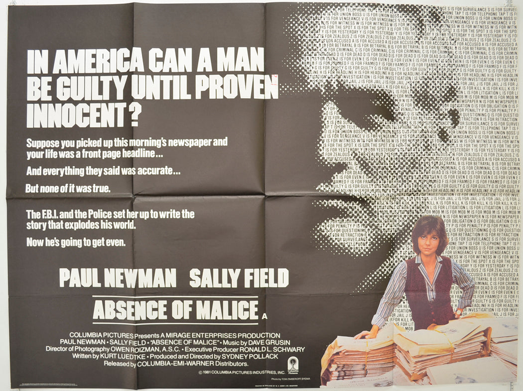 “Absence Of Malice” Original Quad Poster - Film Poster - Movie Poster