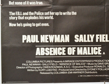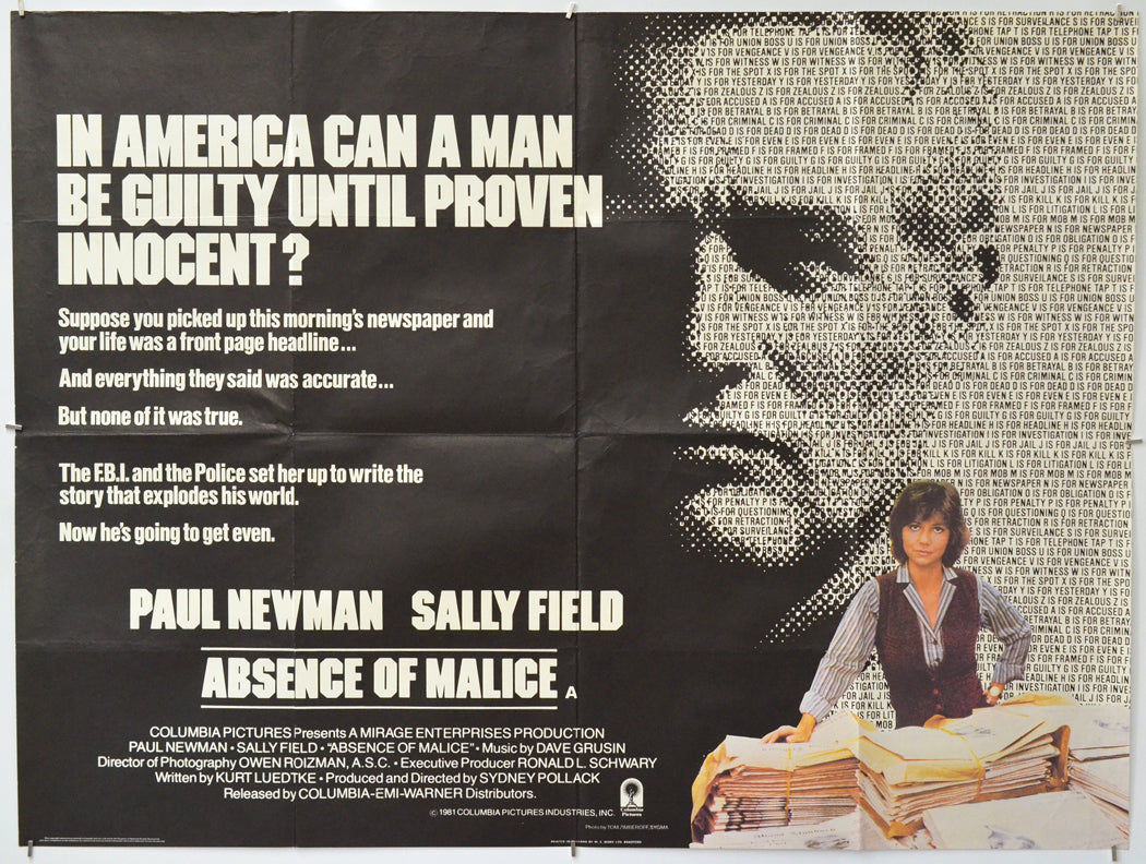 “Absence Of Malice” Original Quad Poster - Film Poster - Movie Poster