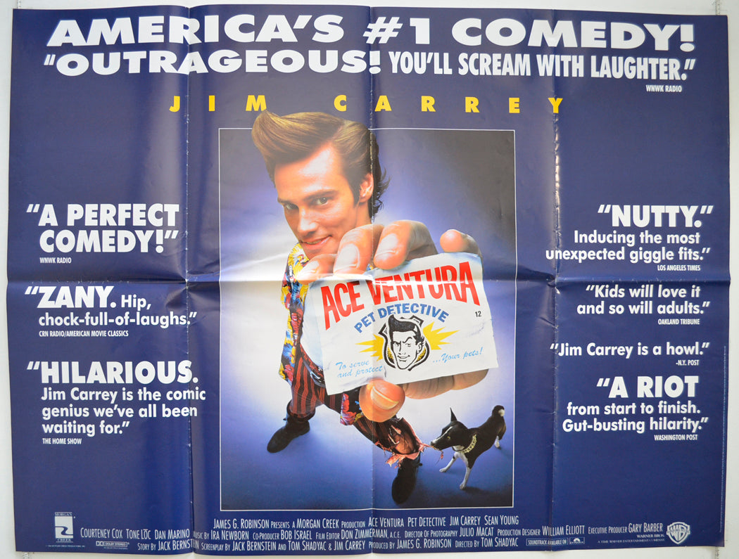 “Ace Ventura : Pet Detective” (Reviews Version) Original Quad Poster - Film Poster - Movie Poster