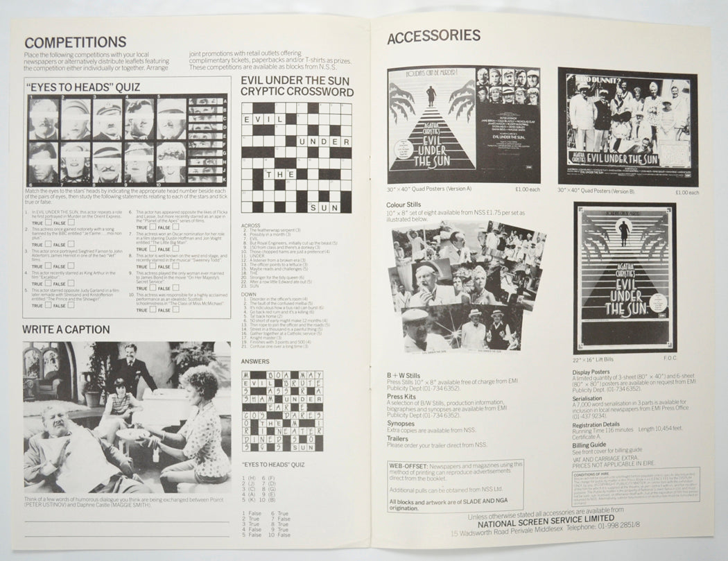 “Agatha Christie’s : Evil Under The Sun” Original 8 Page Cinema Exhibitors Campaign Pressbook (UK)