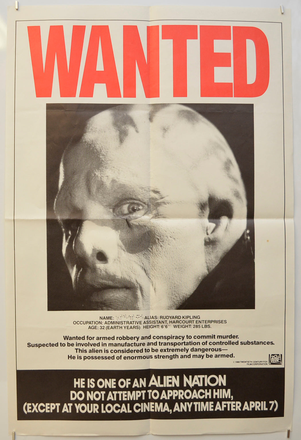 “Alien Nation” Original Double Crown Poster - Film Poster - Movie Poster
