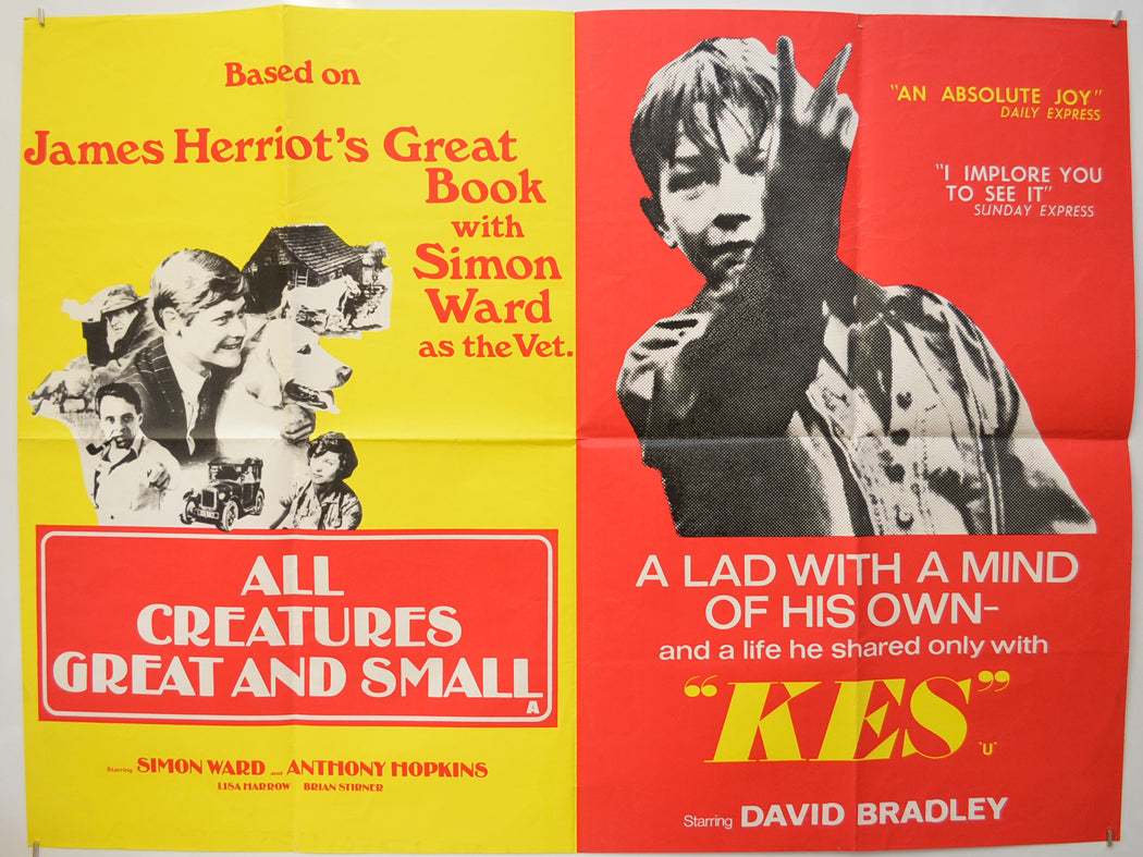 “All Creatures Great And Small / Kes” (Double Bill) Original Quad Poster - Film Poster - Movie Poster