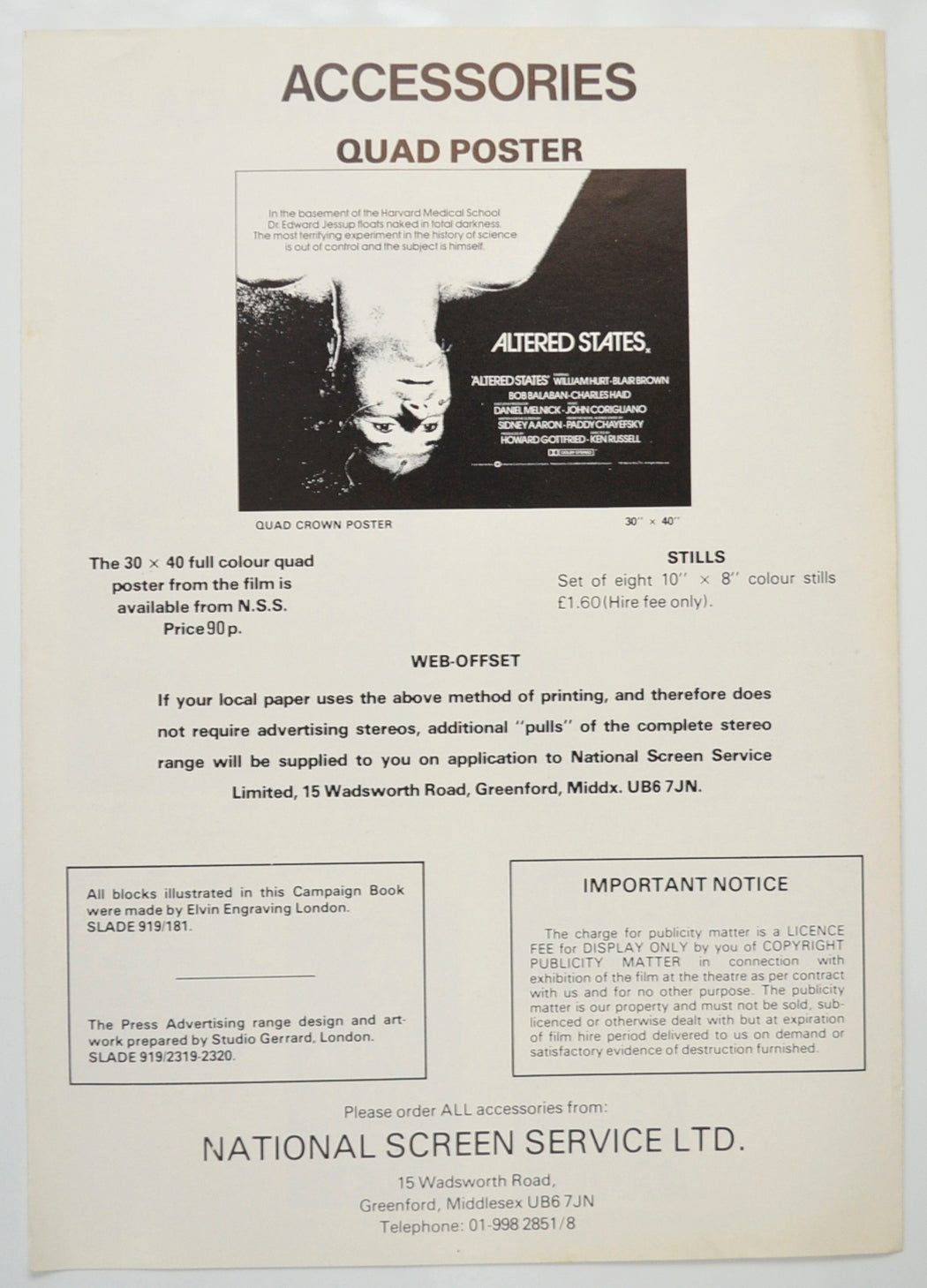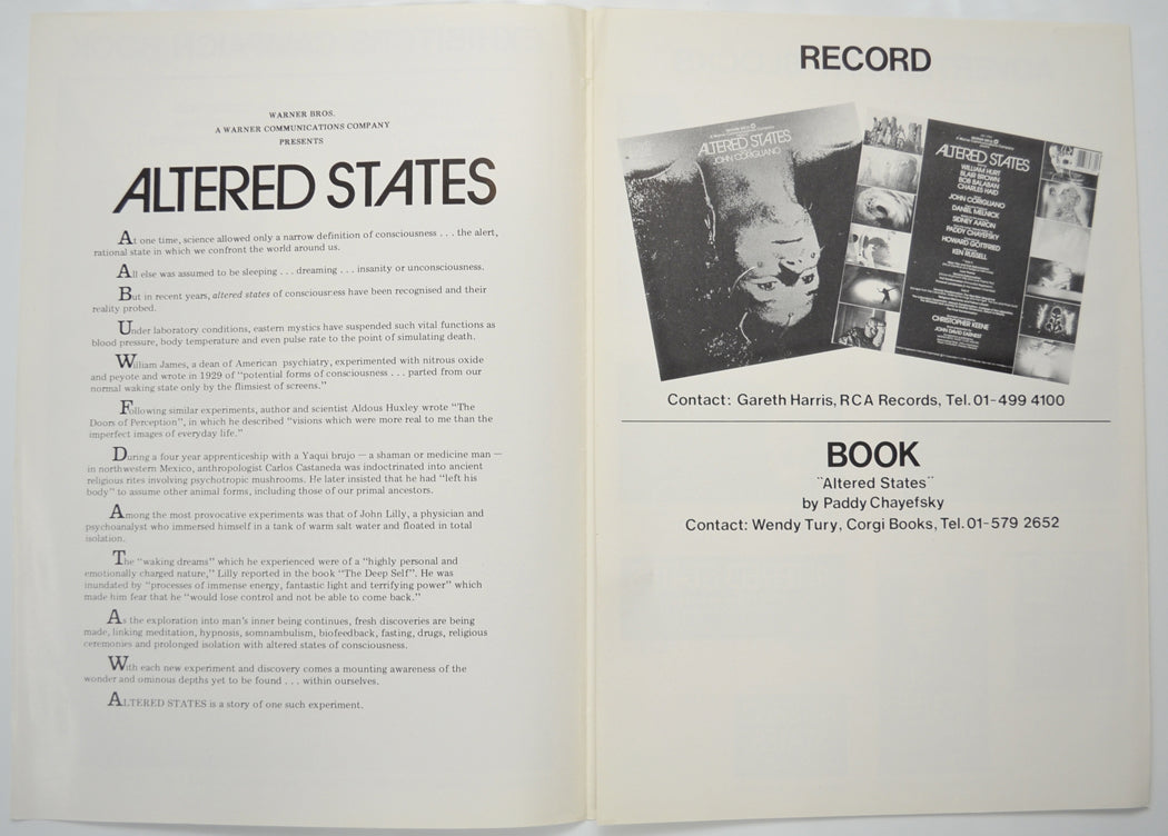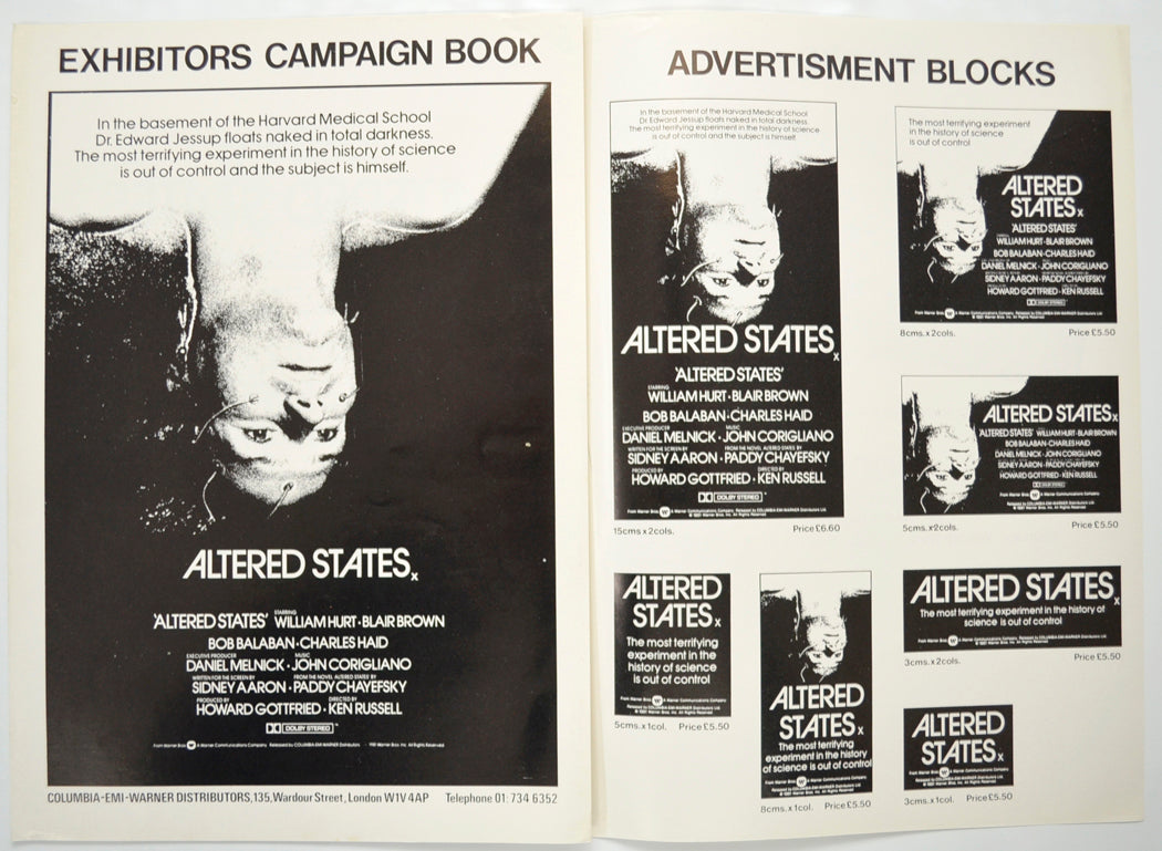“Altered States” Original 6 Page Cinema Exhibitors Campaign Pressbook (UK)
