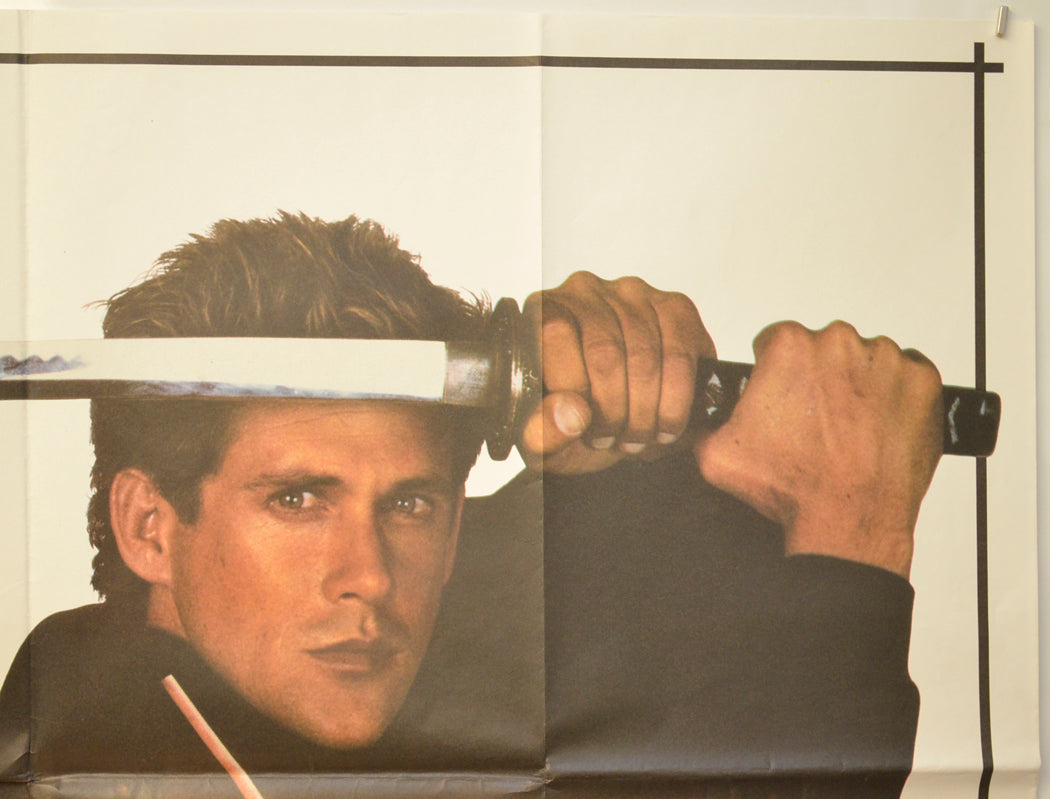 1 cm tear and mild creasing on the top edge (mostly on the left), 1 cm tear and a smaller tear on the bottom edge, lightly dented corner tips, title has been written on the back of the bottom edge in Biro (the pressure from the pen has slightly embossed the front), some very light surface creasing near the left edge and also between Dudikoff’s ear and the 2, light vertical crease from the top edge down to the J in Ninja, otherwise very good!.