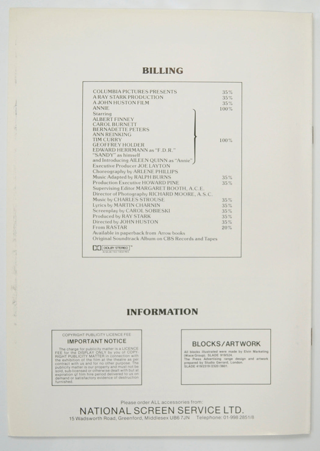 “Annie” Original 12 Page Cinema Exhibitors Campaign Pressbook (UK)