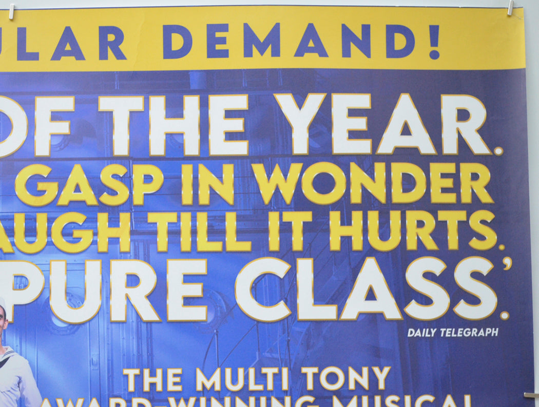 1 cm tear and mild creasing on the top edge, 6 cm crease from the top edge down between the R in POPULAR and D in DEMAND, 2 cm diagonal crease across the top right corner, tiny crease across the tip of the bottom right corner, mild creasing on the bottom edge, 10 cm diagonal crease and a smaller crease across the bottom left corner, a couple of tiny creases near the top of the left edge, some very light vertical roll waves evenly spaced across the poster (should dropout), approximately 5 light 10 cm vertical creases evenly spaced across the poster (through title level), otherwise very good.
