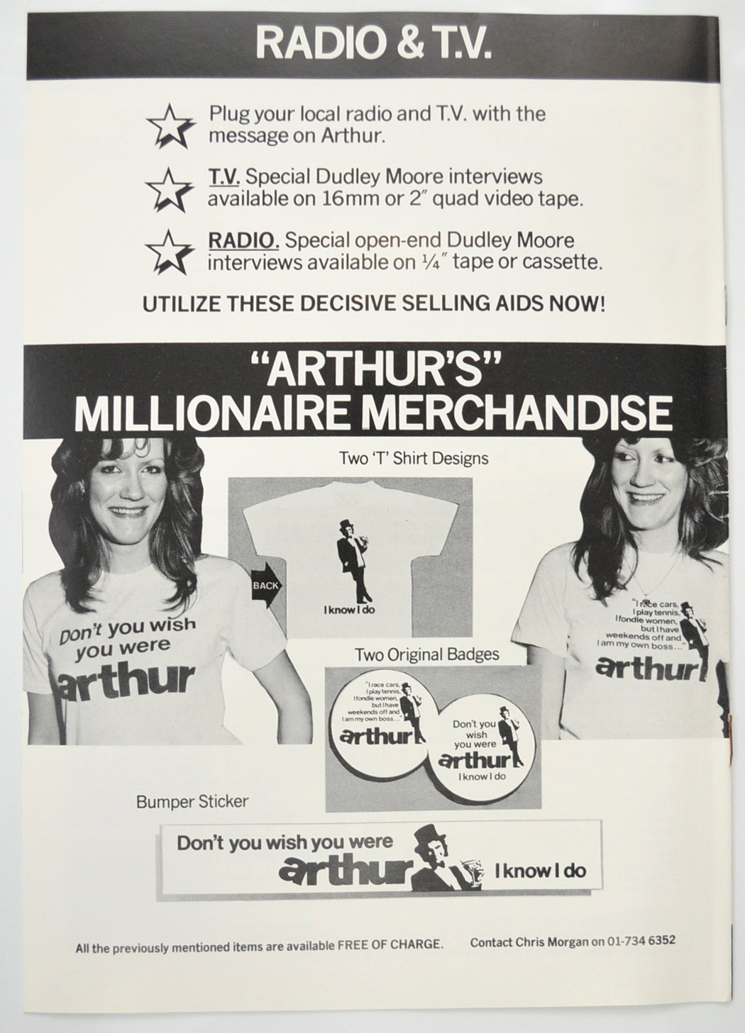 “Arthur” Original 8 Page Cinema Exhibitors Campaign Pressbook (UK)