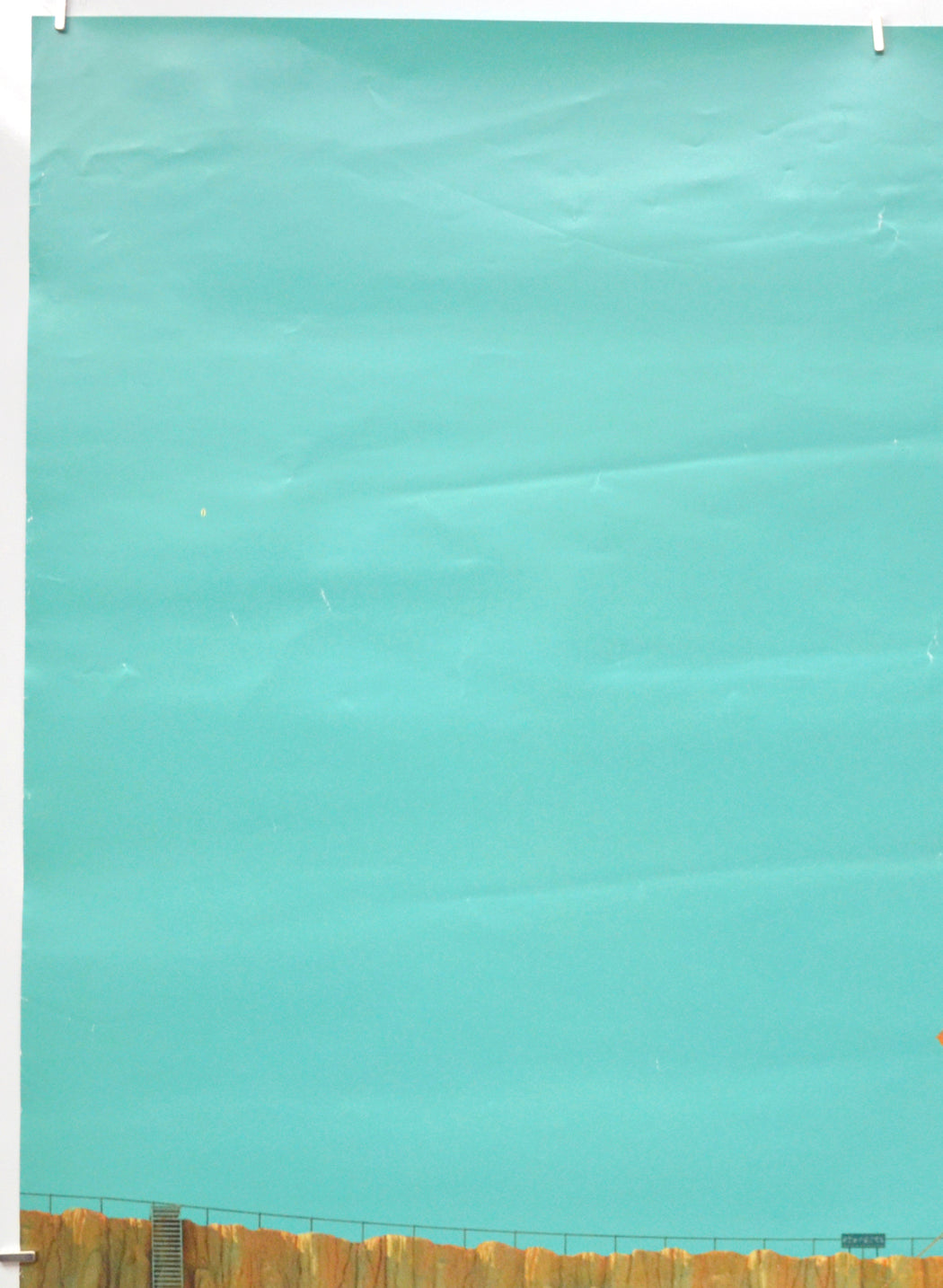 Approximately 10 slightly diagonal creases completely across the poster (evenly spaced from top to bottom) the creases within the top half of the poster are heavier and also have some white stress marks in the central areas of them, two additional small white surface creases near the left edge along with a small light circular print error ring (within the sky area of the top half), small tear on the top edge, approximately four extremely tiny tears and moderate creasing on the right edge (heavier creasing at the top), tiny tear and mild creasing on the left edge, a few small white stress marks on the bottom crease lines going through the IN CINEMAS text, tiny white stress mark within the D and C of the title, a couple tiny white stress marks just below Swinton’s legs, otherwise okay but the creasing is noticeable particularly within the top half of the poster.