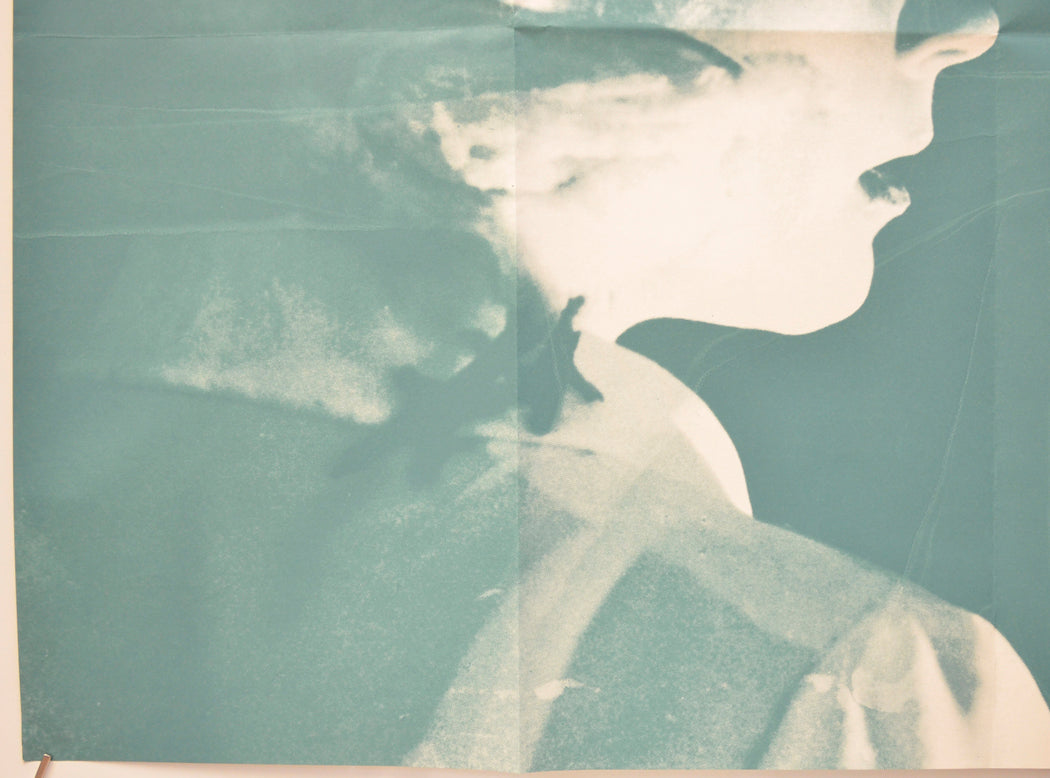 Numerous light print error streaks throughout the poster most noticeably from the top center down to the girls nose and several completely across the poster (mostly just below the center fold), the black banner text has been stuck over the original printed text due to a print error naming the actress as Ivy instead of Iya (the adhesive has dried out on the banner comes off), otherwise good.
