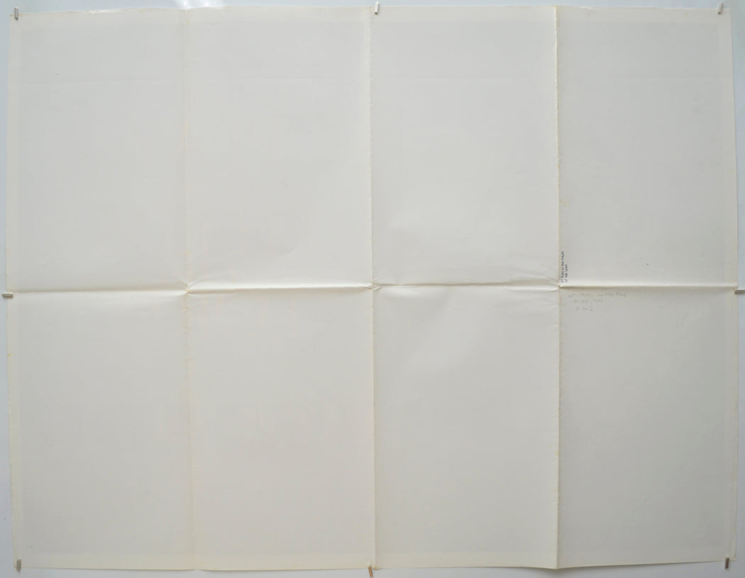 Tiny crease across the tip of the top corners, extremely mild creasing and a few tiny faint Brown specks of damp (foxing) on the top edge, extremely tiny tear near the top of the right edge, mild creasing/edge wear on the right edge, a few small faint Brown spots of damp (foxing) on the side edges/ within the side borders and also around the bottom center, tiny pinhole near both top corners and two slightly larger pinholes a little further inward of both top corners (within the main image areas approximately 11 cm diagonal inward of the corners), extremely faint additional horizontal crease/fold line near the top edge (just below the review text at the top), very mild fold wear including a tiny wear hole at the left fold intersection along with white stress marks on the left vertical fold line, the title has been written on the back in black pen and there are a few faint tiny Brown specks of damp (foxing) on/around the back of the left vertical fold line (only noticeable on the front if the poster is held up to the light / backlit), otherwise very good.