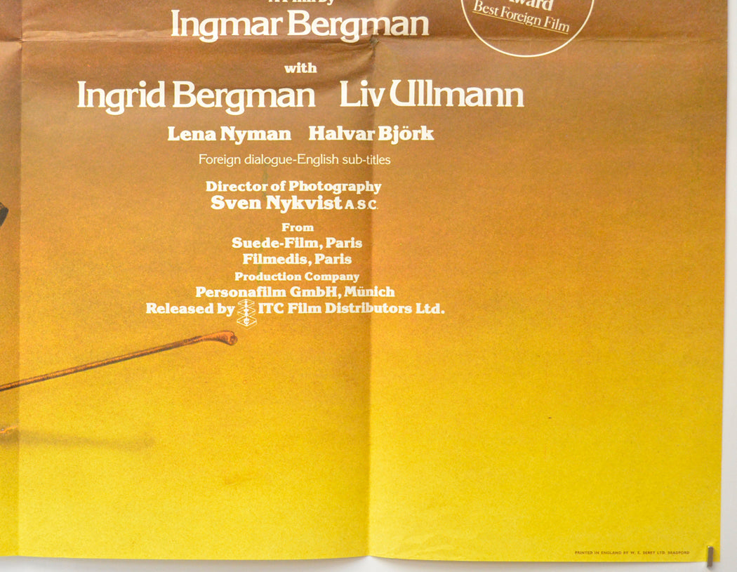 “Autumn Sonata” Original Quad Poster - Film Poster - Movie Poster