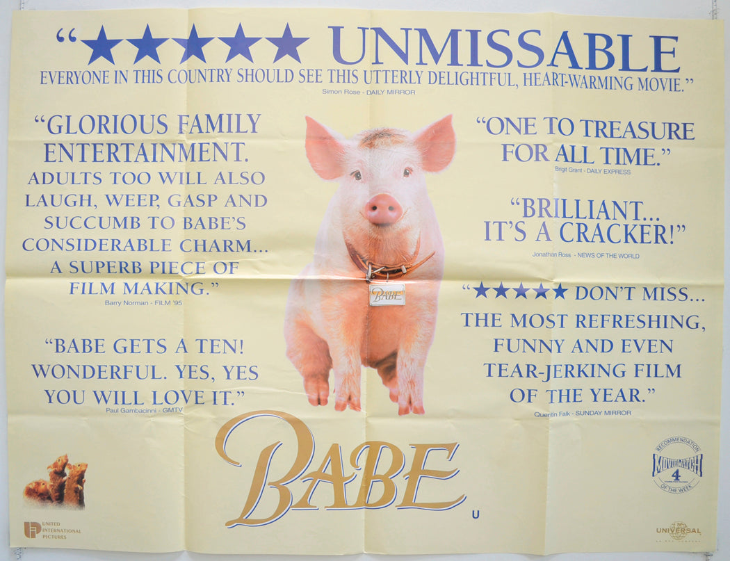 “Babe” (Reviews Version) Original Quad Poster - Film Poster - Movie Poster