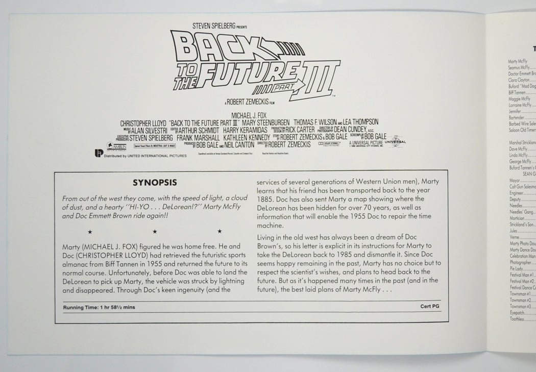 “Back To The Future Part III” Original Cinema Exhibitors Press Synopsis / Credits Booklet (UK)