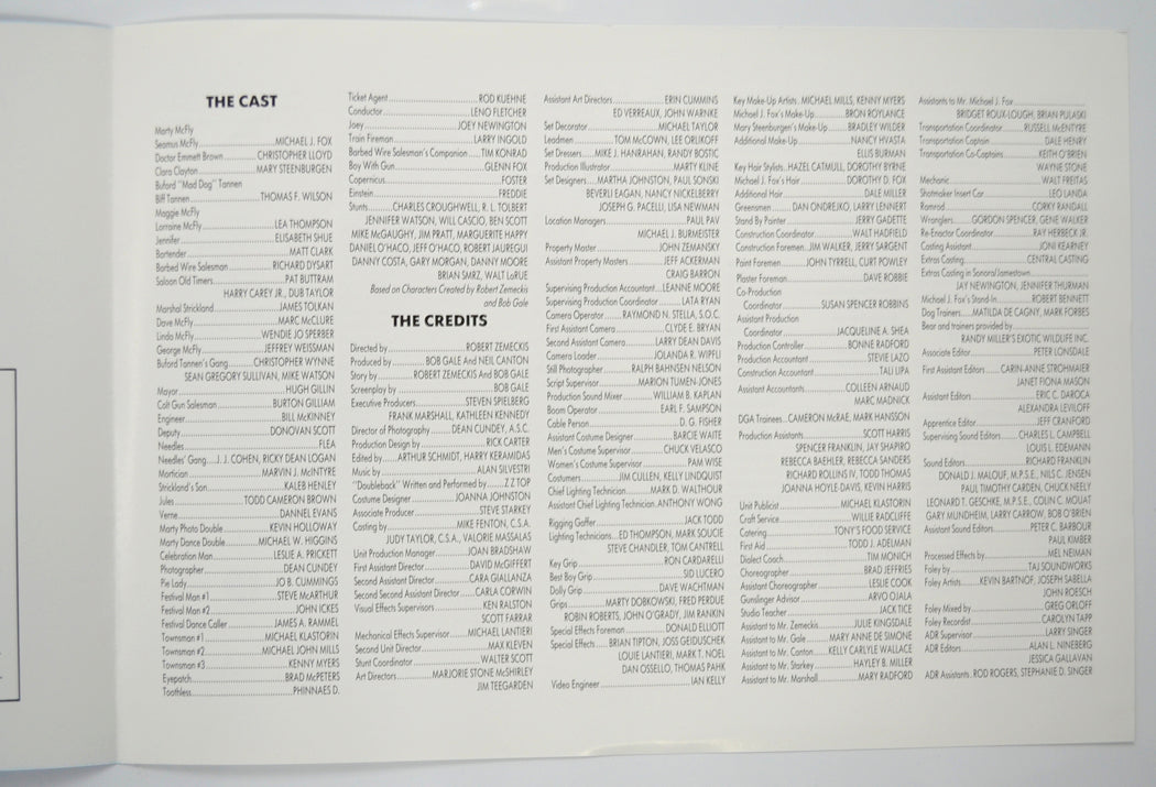 Michael J. Fox, Crispin Glover, Christopher Lloyd, Thomas F. Wilson, Lea Thompson, Mary Steenburgen, Elisabeth Shue, Matt Clark, Richard Dysart, Dub Taylor, Harry Carey Jr., Pat Buttram, Hugh Gillin, James Tolkan, Christopher Wynne, Sean Gregory Sullivan, Mike Watson, Marc McClure, Wendie Jo Sperber, Jeffrey Weissman