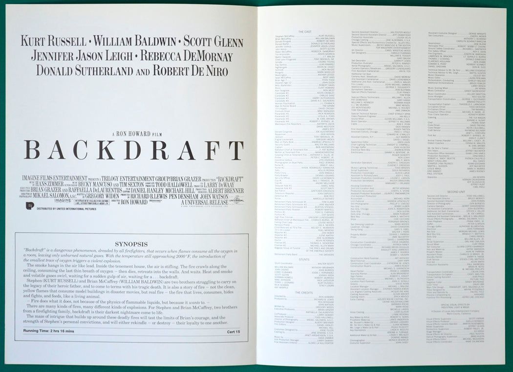 “Backdraft” Original Cinema Exhibitors Synopsis / Credits Booklet + Advertising Blocks and Accessories Sheet