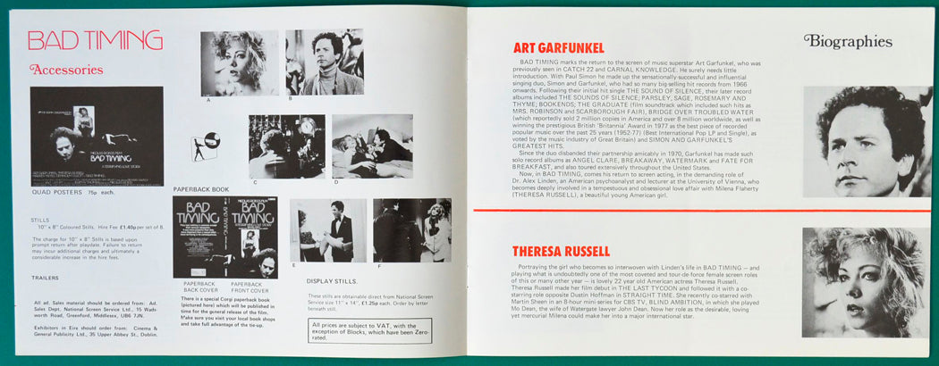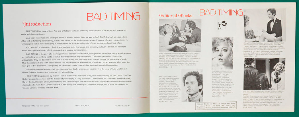 “Bad Timing” Original 12 Page Cinema Exhibitor's Campaign Press Book + Synopsis / Credits Booklet