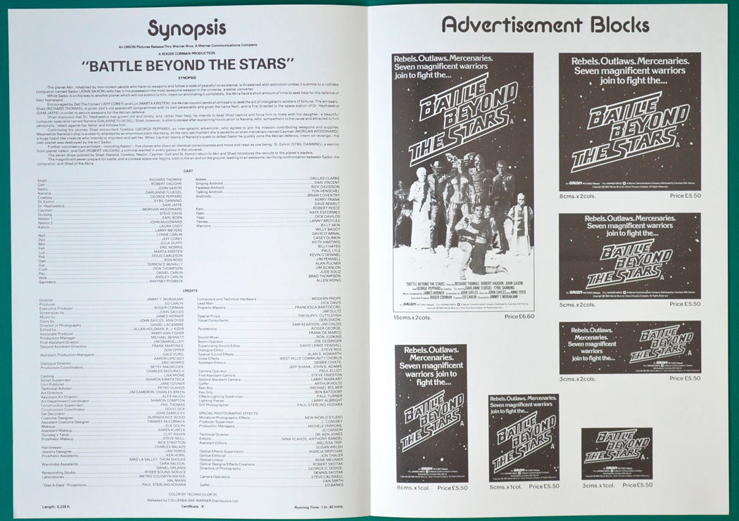 “Battle Beyond The Stars” Original 4 Page Cinema Exhibitor's Campaign Press Book + Synopsis / Credits Sheet
