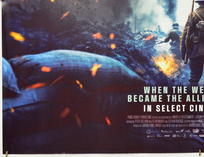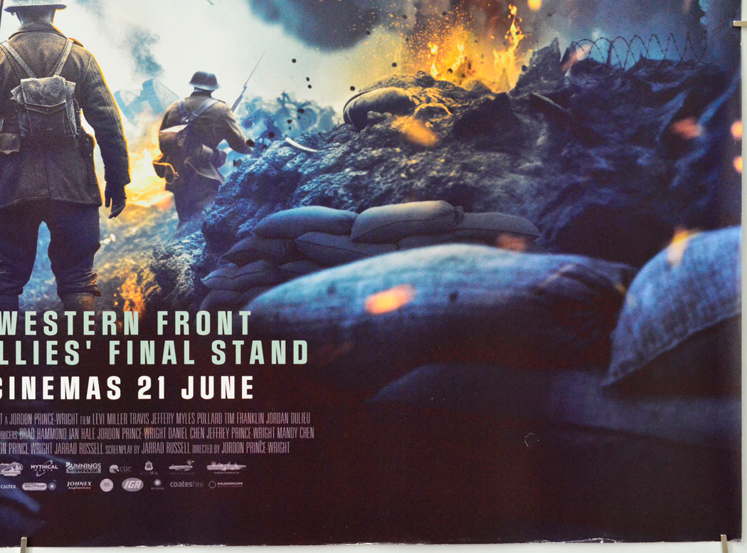 Extremely mild edge wear on the top edge, two extremely tiny tears and very mild creasing/edge wear on the bottom edge, 1 cm tear just below the center of the left edge (has a little acid free tape on the back), 2 cm circular ring mark near the bottom left corner (the poster was probably pressed against a circular object/washer in the frame), small spot of blu-tac grease/residue below the sandbags on the right (near bottom edge), approximately 8 very light vertical roll waves from top to bottom evenly spaced across the poster (these should dropout over time or if framed), some light surface creasing within the first 7 inches (17 cm) of the left of the poster including a few small white stress marks, Blu-tac grease/residue on the back of the corners, otherwise good.Double Sided :