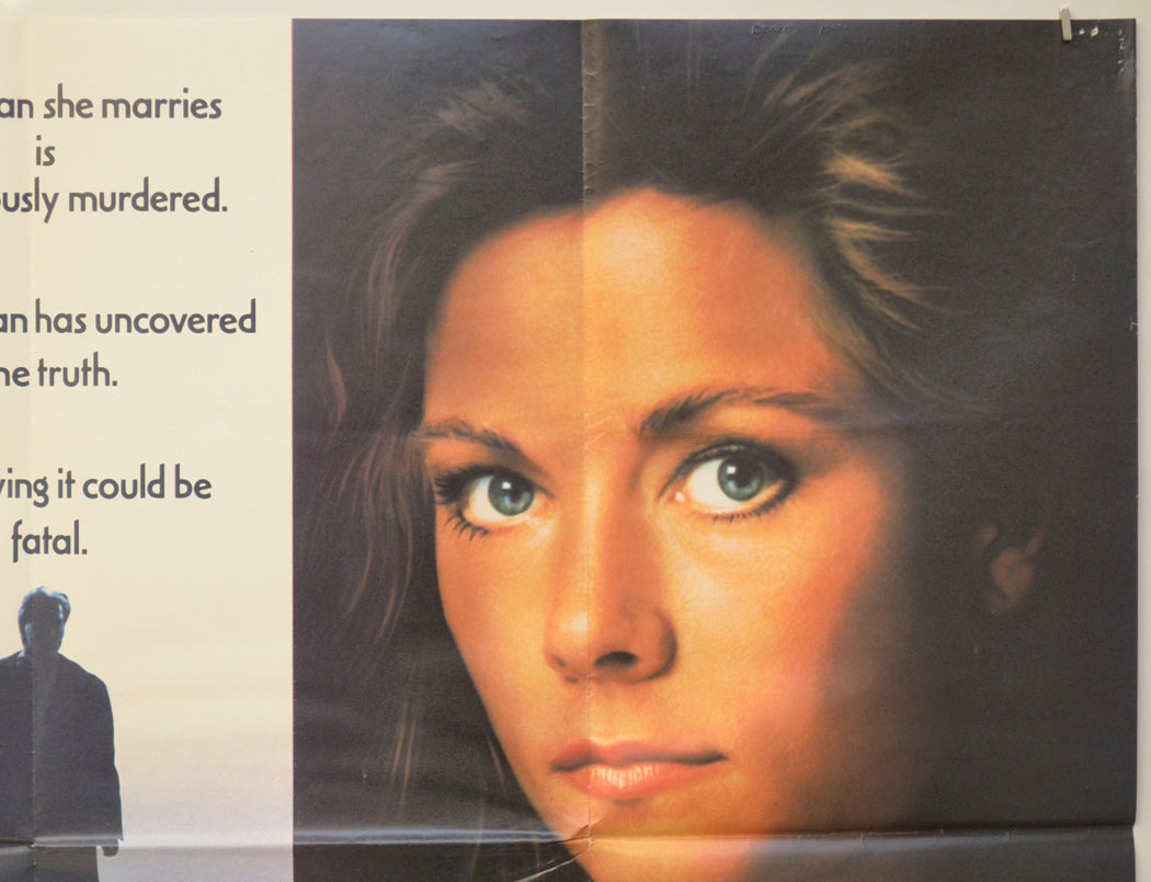 2 x 1 cm red print error patch in the black background below Russell’s neck and a similar patch to the left of Winger’s left eye, 3 x 1 cm red print error patch on the left edge (near top), tiny tear on the top edge, two small tears and very mild creasing on the right edge, mild creasing on the bottom edge, tiny crease on the left edge, 4 to 6 pinholes near every corner (some have torn slightly), pinhole in the top of Winger’s hair and one in either side of her hair, pinhole just below the “murder” text at the top center, mild fold wear (note there are three horizontal fold lines), additional creasing around some of the fold intersections, some light fingermarks around the bottom corners, title has been written on the back in Biro which has slightly embossed the front (on the top edge near both the left and right corners), otherwise good.