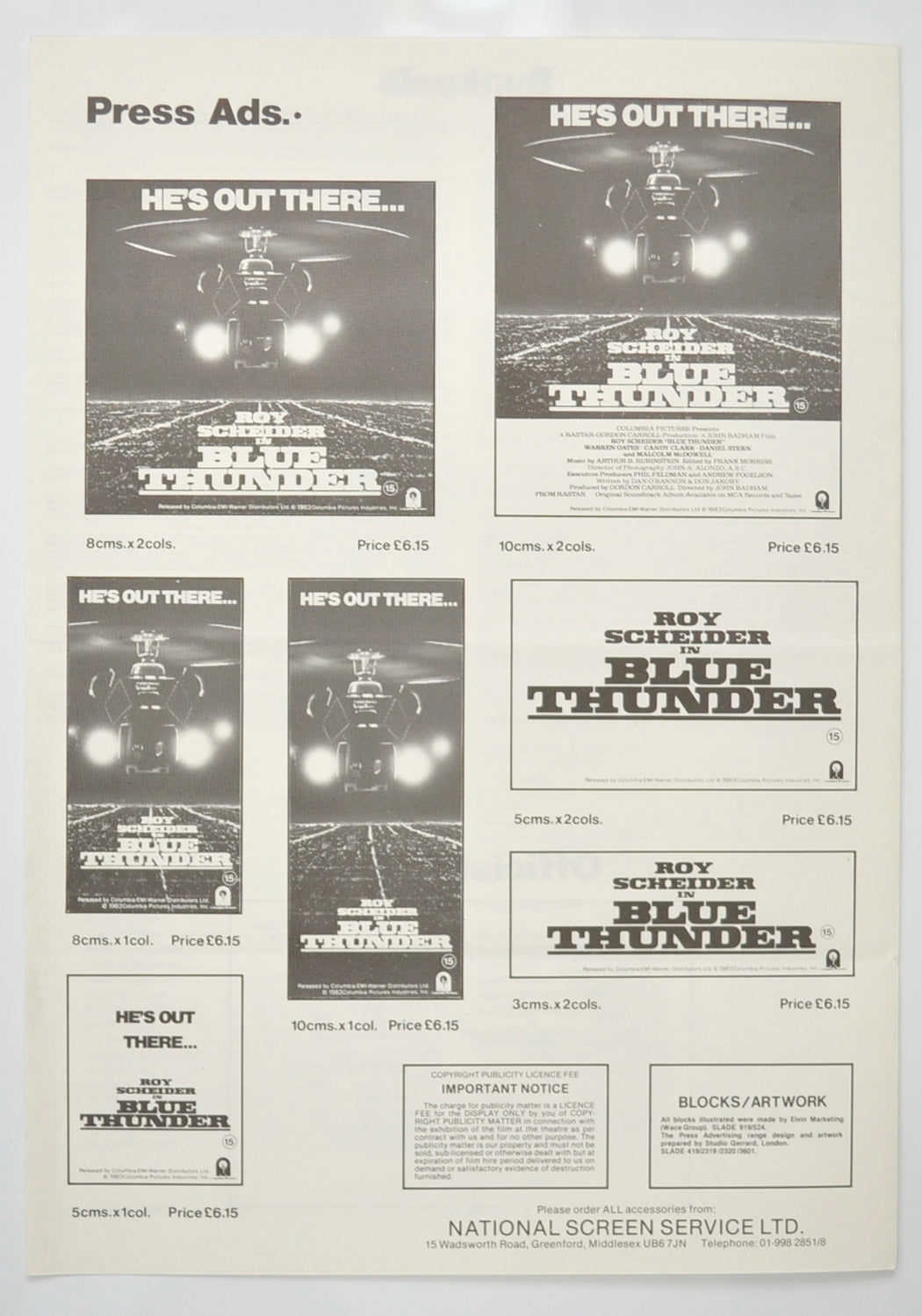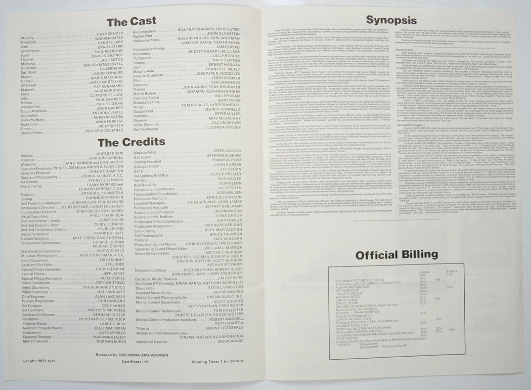 “Blue Thunder” Original 4 Page Cinema Exhibitors Campaign Pressbook (UK)