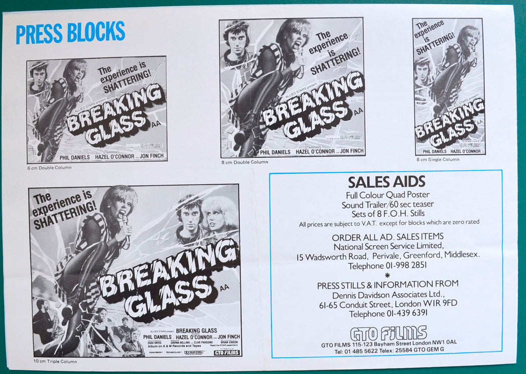 “Breaking Glass” Original 4 Page Cinema Exhibitors Campaign Press Booklet