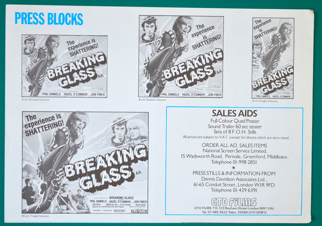 “Breaking Glass” Original 4 Page Cinema Exhibitors Campaign Press Booklet