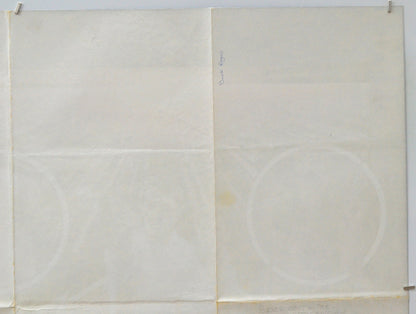 1 cm tear along with a tiny tear on the top edge, three faint finger grease marks in the top black border (between the left and center fold lines) and another around the top center, extremely mild edge wear at the center of the right edge, some light blueish patches in the black background along the bottom (mostly around the bottom center) along some very light surface ripples indicating the area may have become slightly damp at some point, very light surface creasing around the bottom corners, faint finger smudge in the black background just left of the white EARTH text, the back of the left and center vertical fold lines and back of the left half of the center horizontal fold line have browned/have Brown spots of damp (foxing) on them and there are a few small light Brown liquid splashes on the back of the bottom left of the poster along with a faint 3 cm brownish grease stain? also on the back (all only noticeable on the front if the poster is held up to the light / backlit), the title has been on the back of the poster in blue Biro (again only noticeable on front if backlit), very light creasing around some the fold intersections (note there are three horizontal and three vertical folds), otherwise very good!Double Sided :