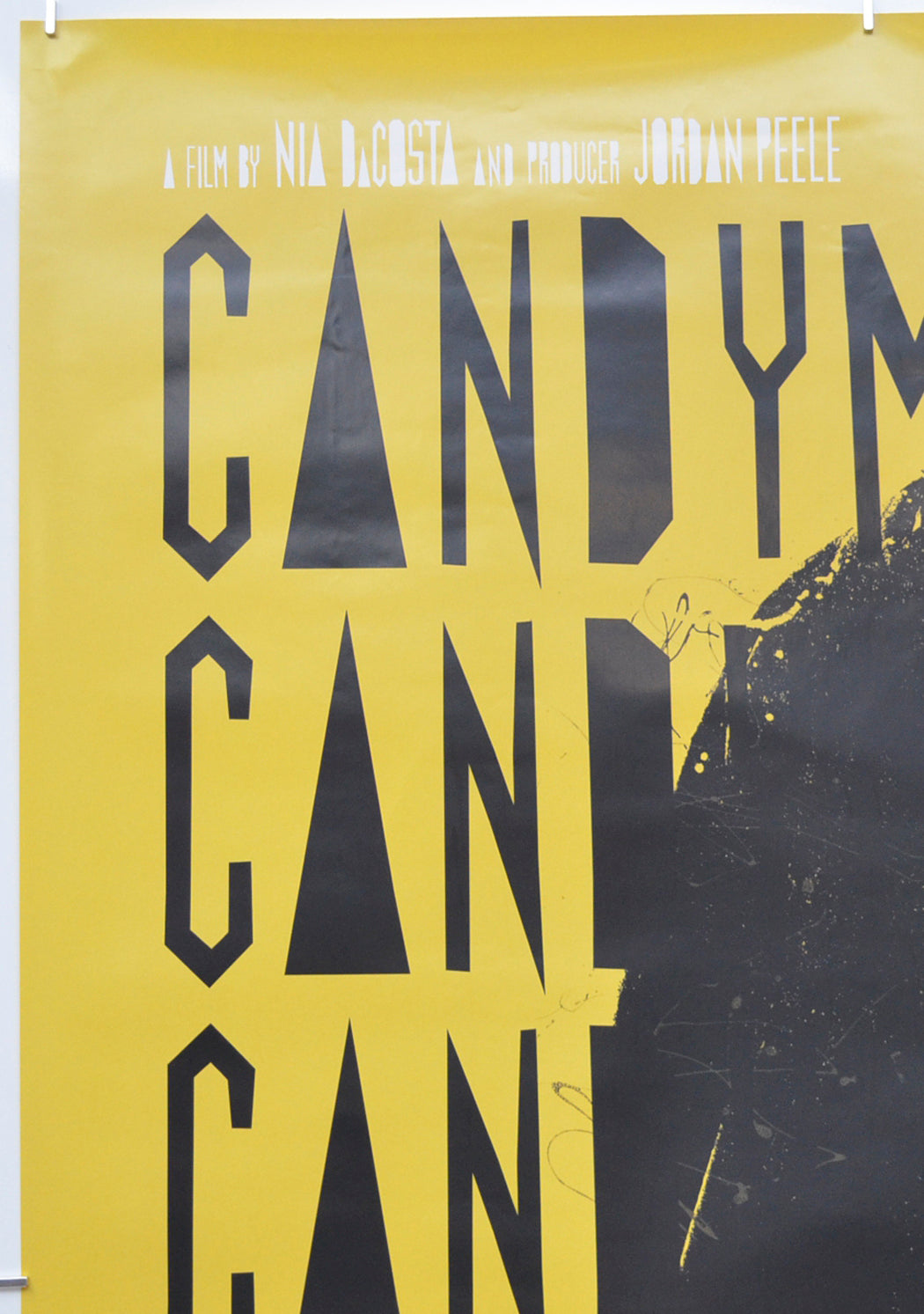 Very mild creasing at the top and bottom of the right edge, small crease on the left edge, small white surface crease near the left edge (to the left of the second from bottom CANDYMAN), some very light surface creasing near the bottom edge including a couple of tiny white stress marks within the bottom of the CANDYMAN title, otherwise very good.
