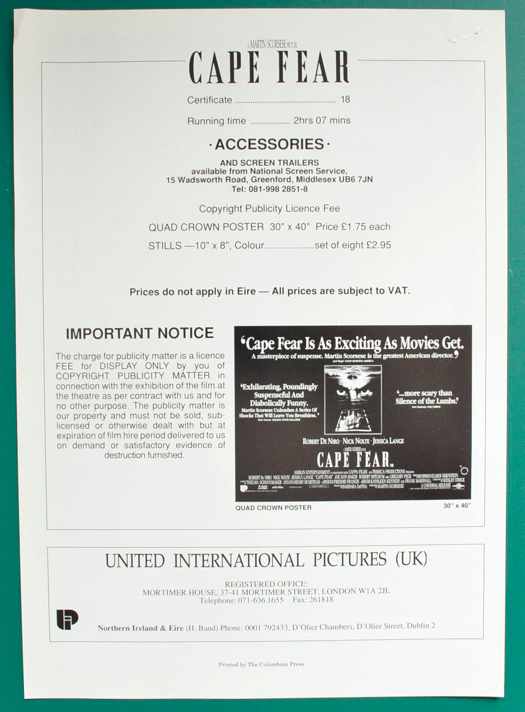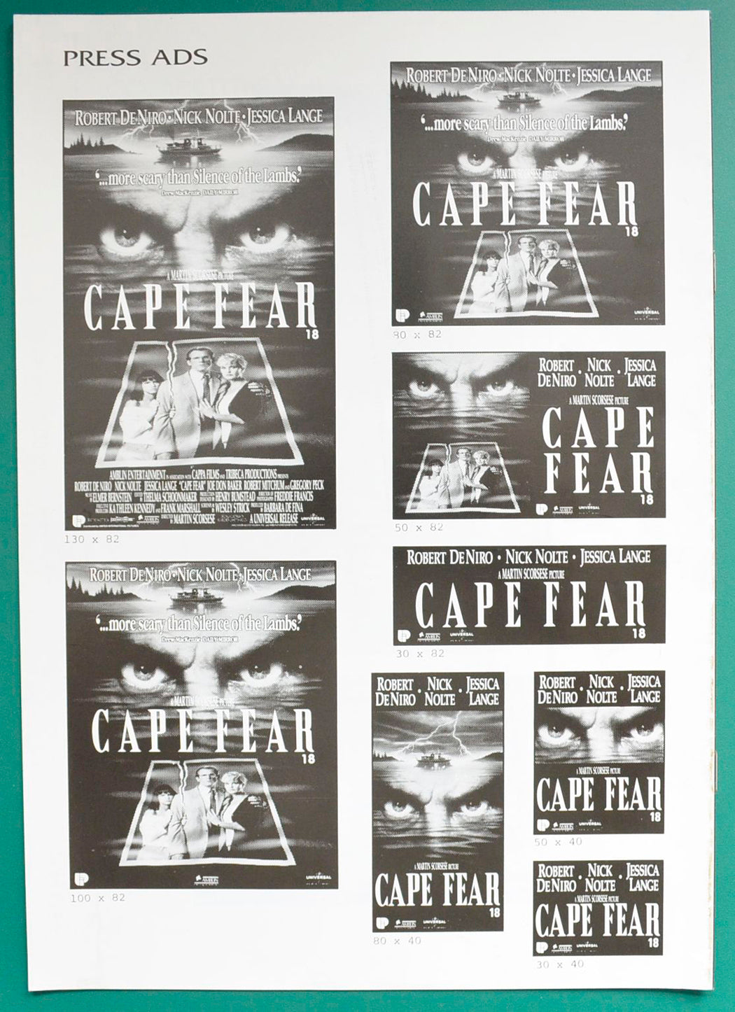 “Cape Fear” Original 8 Page Cinema Exhibitor's Campaign Press Book + Accessories / Advertising Blocks Sheet.
