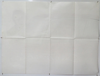 12 cm vertical crease line just right of the top of the left vertical fold line, extremely mild creasing on the right edge, extremely tiny tear and extremely mild creasing on the bottom edge, tiny tear at the bottom of the left edge, 2 cm light diagonal crease across the bottom left corner, extremely faint fine 15 cm vertical blue print line next to the right edge (top half), light creasing between some of the fold intersections, otherwise excellent!Double Sided :