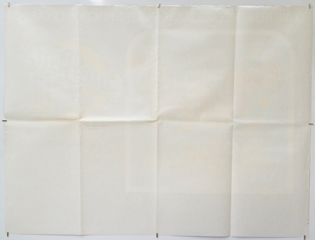 Extremely mild creasing on the top and left edges, approximately 7 tiny greyish liquid splashes on the back of the bottom of the left edge (only noticeable on the front if the poster is held up to the light / backlit), extremely mild fold wear (light creasing around some the fold intersections and crease fold lines), otherwise excellent.Double Sided :