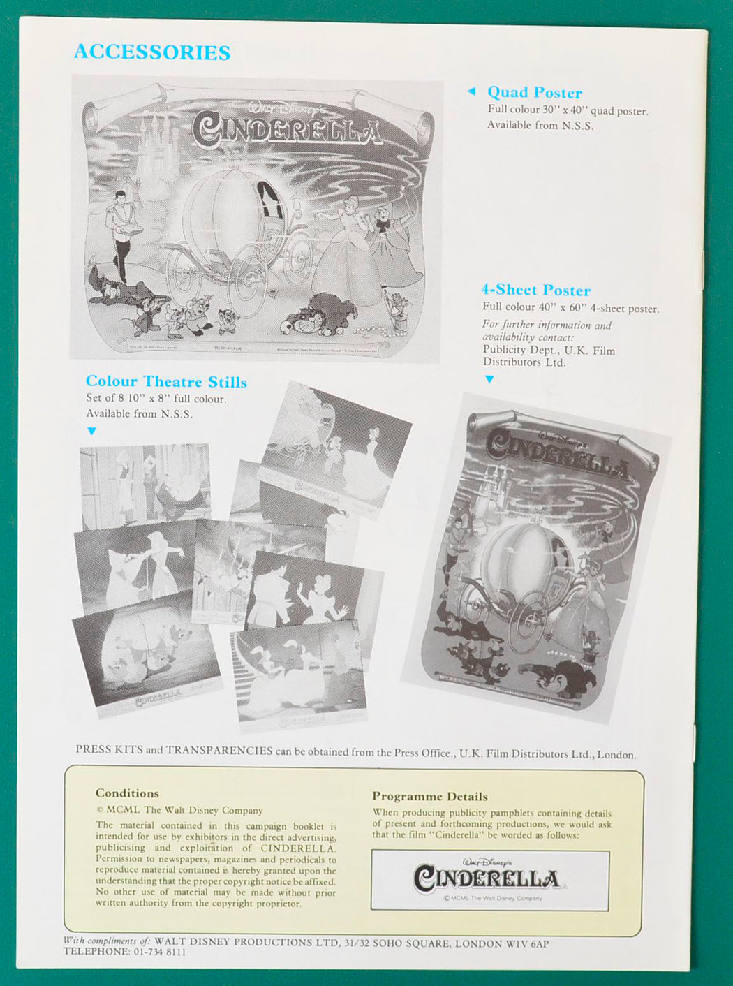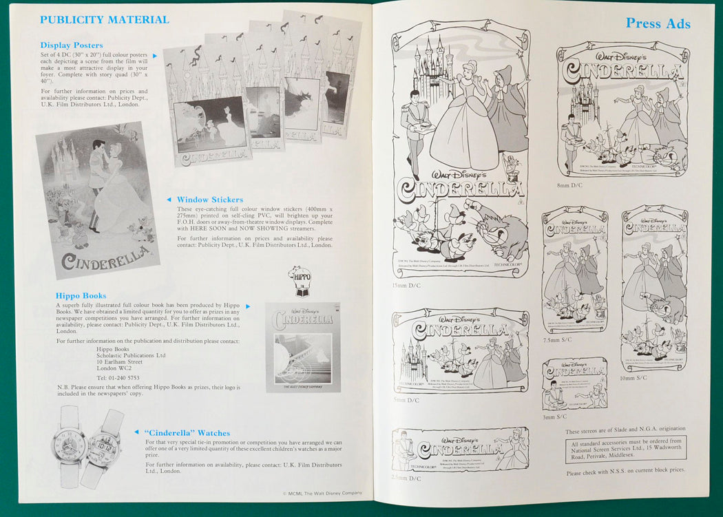 “Cinderella” Original 8 Page Cinema Exhibitors Campaign Press Book + 9 Page Production Information with folder + Synopsis / Credits Leaflet