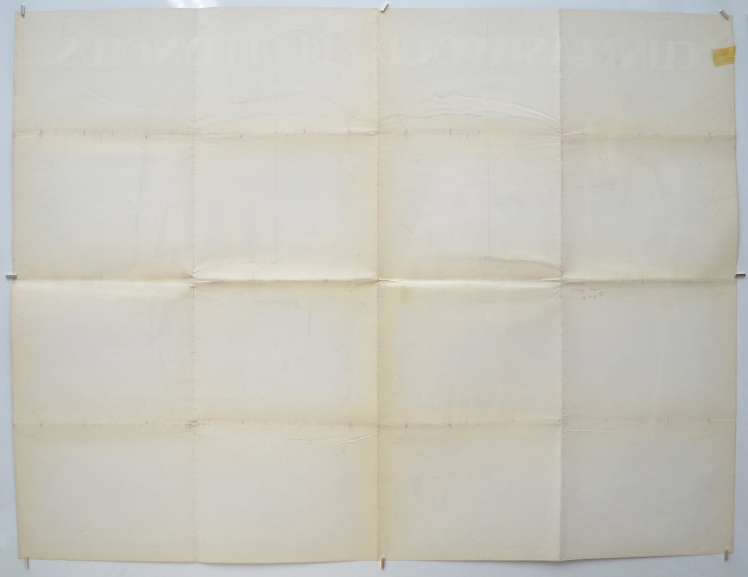 2 cm patch of Sellotape near the top of the left edge which is reinforcing a 2 cm tear, extremely mild edge wear on the right edge of the top and center horizontal fold lines, the brown background around the top horizontal fold line is quite light and patchy in places (particularly between Reynolds head and the taglines), a few light patches also around the bottom horizontal fold line, mild fold wear (white stress marks on the fold lines and additional creasing around the intersections), two very faint vertical light print error bands from the top edge down to the H and A in HEAT (only really noticeable upon close inspection or if the poster is held to light/backlit), yellowing to the backs of the edges and fold lines (only noticeable on the front if the poster is held up to the light / backlit), otherwise good.