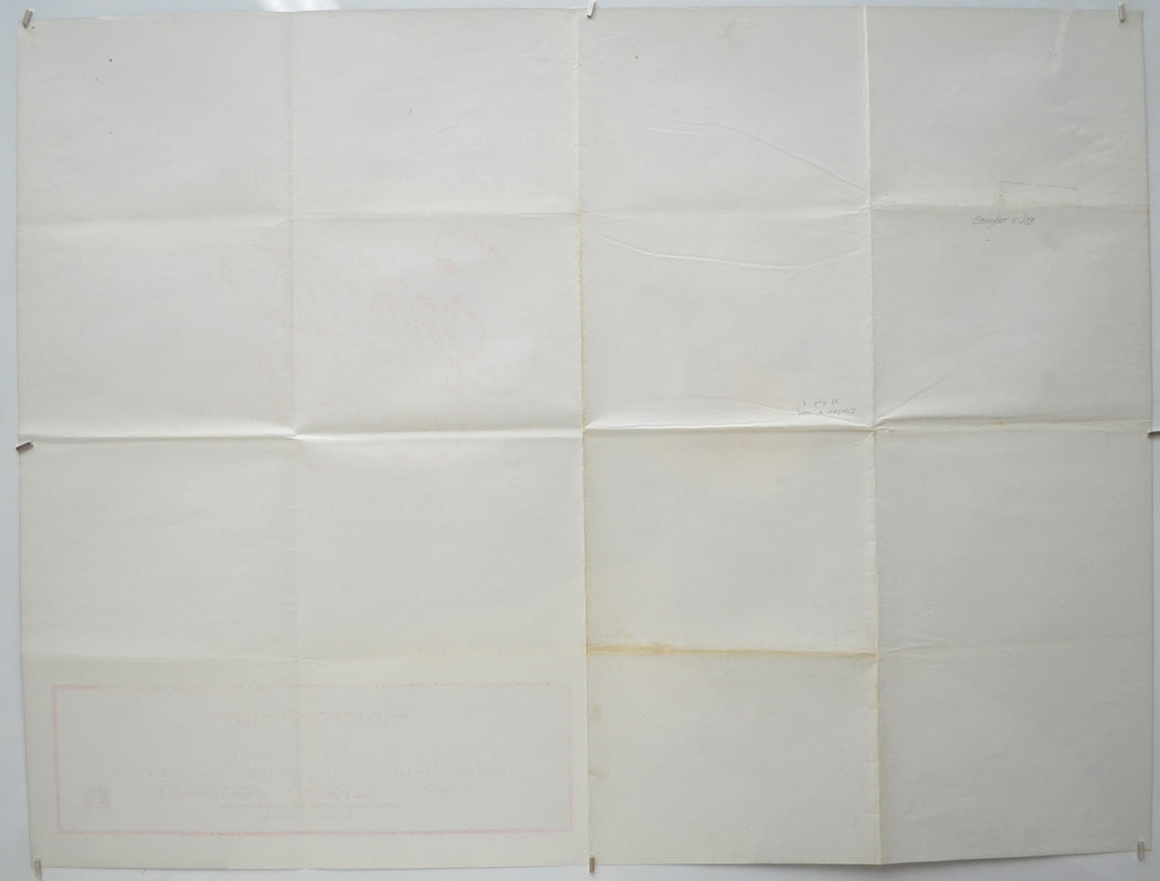 The surface around the first 3 cm of the left edge is a little wrinkled indicating the edge may have become slightly damp at some point (no apparent staining though), two 4 cm creases from the top edge downwards (near left corner), fold wear including additional creasing around some of the fold lines and creasing around and between some of the fold intersections (note there are three horizontal and three vertical folds), slightly diagonal crease from the center fold intersection on the right vertical fold line up to the top edge (due to been folded out of alignment and refolded), 1 to 3 pinholes near every corner (some are several centimetres inward of the edges), two additional pinholes near the top of the right edge, tiny spot print loss on the top right corner, the black print is a little light and patchy in places, Browning to the back of the center and left vertical fold lines and the back of the left half of the center and bottom horizontal folds (some of this is lightly visible on the front around the bottom fold intersection on the center vertical fold… The rest is only noticeable if backlit/held to light), a couple of small grubby marks also on the back (not noticeable on front), otherwise good.