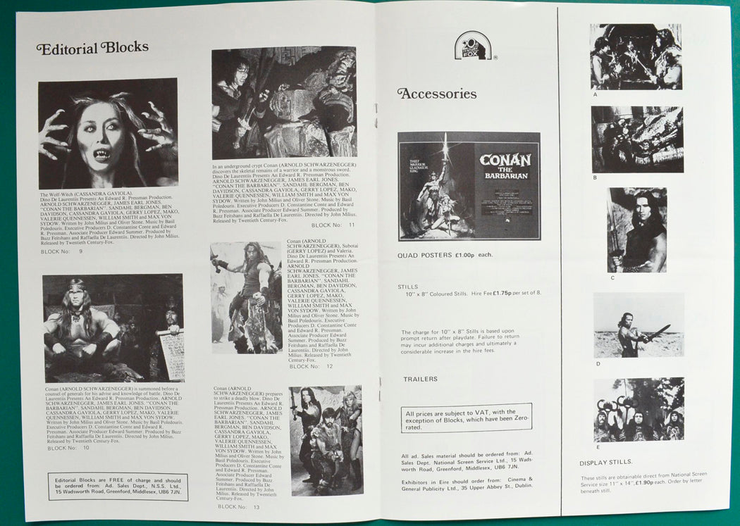 “Conan The Barbarian” Original 8 Page Cinema Exhibitor's Campaign Press Book + Synopsis / Credits Booklet