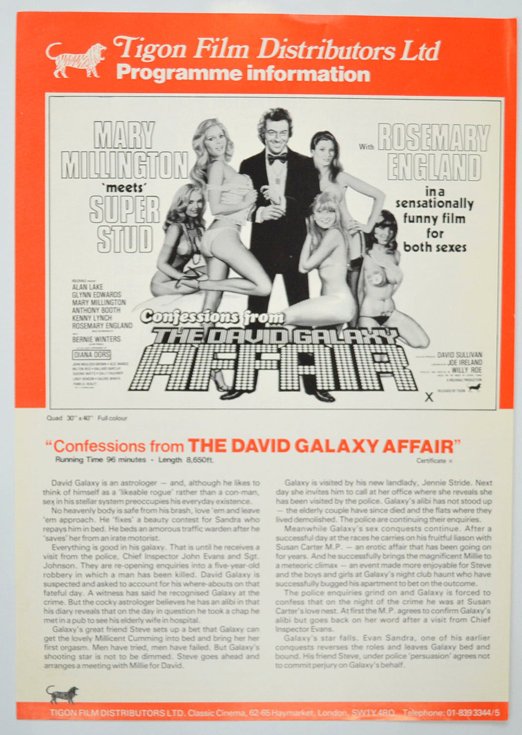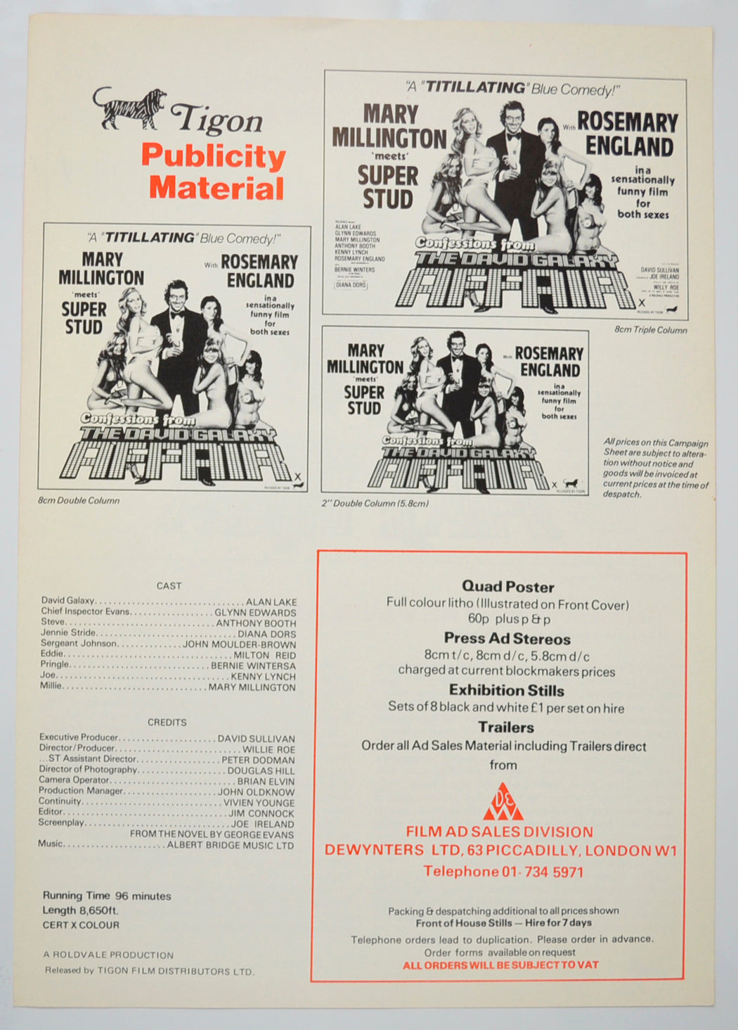 “Confessions from the David Galaxy Affair” Original Single Sheet Cinema Exhibitors Campaign Pressbook (UK)