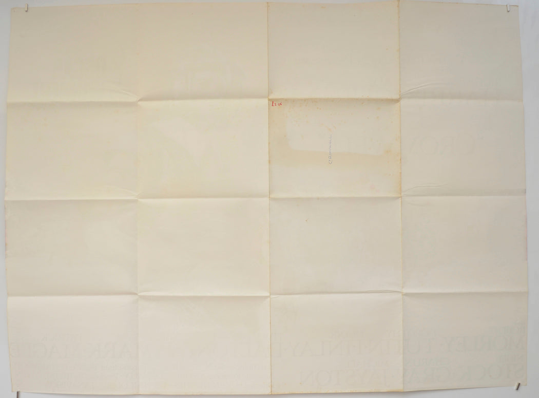 Tiny Brown spots of damp along the bottom edge and on the bottom half of the right edge, Browning and numerous tiny Brown spots of damp on the back of the fold segment containing the “MWELL” in “CROMWELL” the title has also been written on the back of this segment in blue Biro as has a number in red felt pen (all only noticeable on the front if the poster is held up to the light / backlit), pinhole near every corner and at the center of the top edge, two additional pinholes near the top edge (central), extremely mild fold wear, otherwise excellent.
