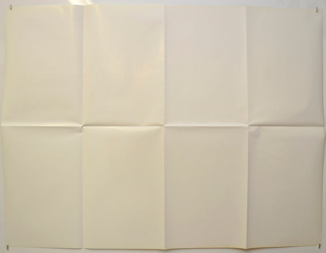 4 cm diagonal crease across the top left corner, 17 x 2 cm vertical band of tiny Brown speckles from the bottom edge up through the right of the credits block (possibly speckles of damp?), Light stress marks on a couple of the fold lines, otherwise very good!