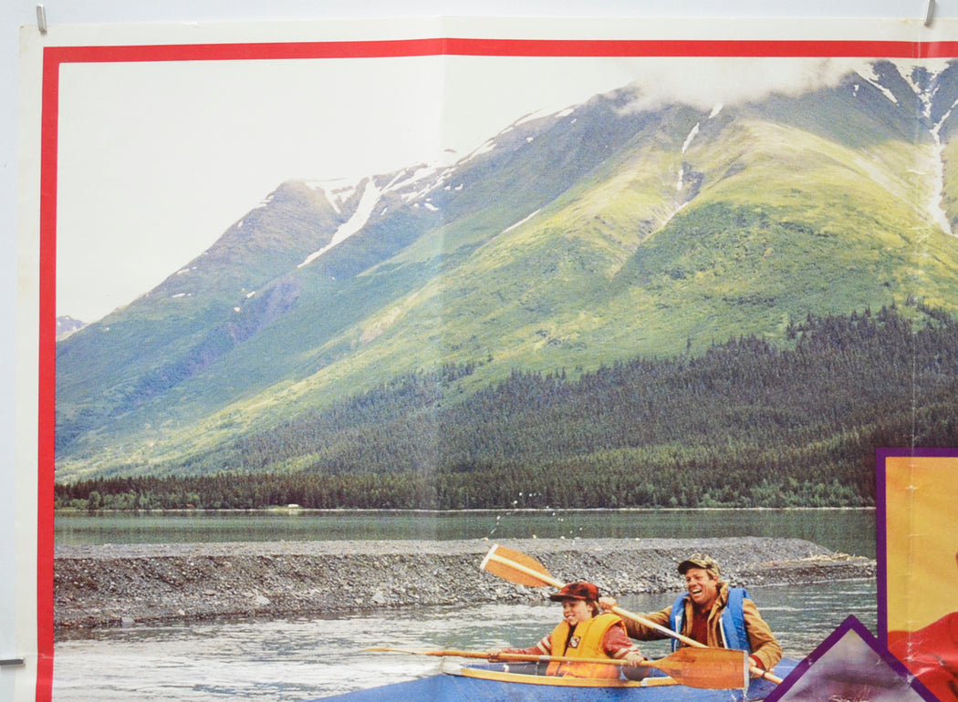 SPECIAL PRESENTATIONS 6TH AND 7TH OF JUNE ONLY AT 3 PM has been written in the bottom green border in green felt pen, 2 cm diagonal crease across the top left corner, two tiny tears and extremely mild creasing on the top edge, small tear and mild creasing on the right edge, 1 cm diagonal crease across the bottom right corner, approximately 6 tiny tears and moderate creasing on the bottom edge, 12 cm diagonal crease and an 8 cm crease across the bottom left corner, extremely mild creasing on the left edge, three pinholes near the top right corner (one has torn slightly), Browning/Brown spots of damp on and around the back of the center vertical fold line and the back of the left quarter of the bottom horizontal fold line (some of this is lightly visible on the front around the top of the center vertical fold line… The rest is only noticeable if the poster is held to light/backlit), small patch of tape adhesive also on the back (again only noticeable on front if backlit), mild fold wear including a 1 cm tear through the center vertical fold line (within the hills near the top) along with a couple of additional tiny separations plus white stress marks and additional creasing on and around some of the folds and intersections, otherwise good.