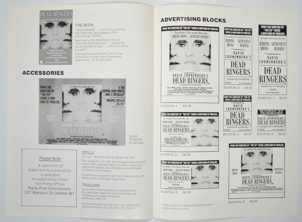 “Dead Ringers” Original 4 Page Cinema Exhibitors Campaign Pressbook (UK)
