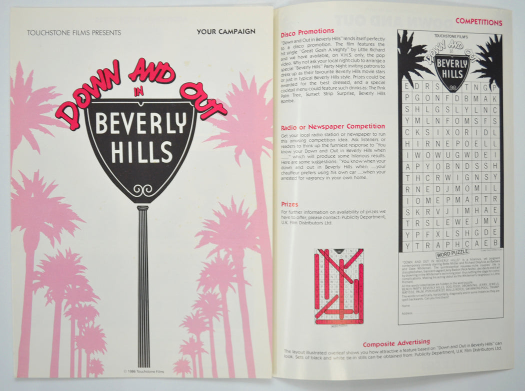 “Down And Out In Beverly Hills” Original 6 Page Cinema Exhibitors Campaign Pressbook (UK)