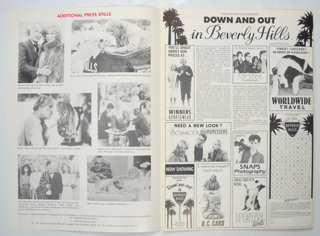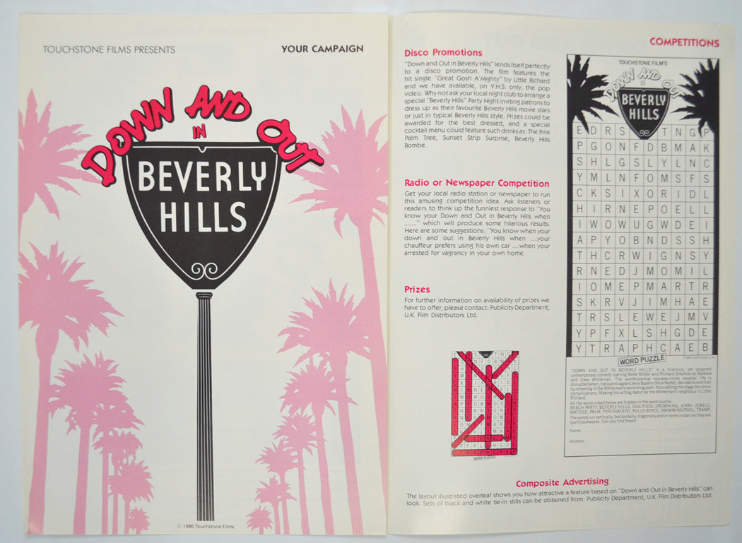 “Down And Out In Beverly Hills” Original 6 Page Cinema Exhibitors Campaign Pressbook (UK)