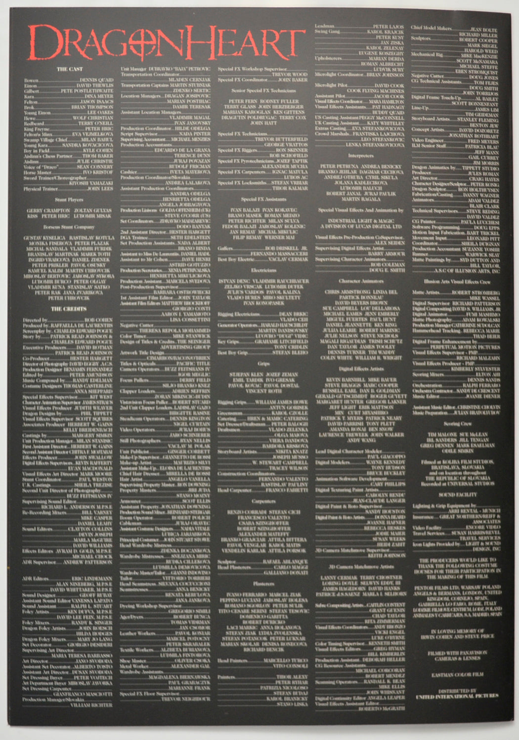 “Dragonheart” Original Cinema Exhibitors Press Synopsis / Credits Booklet (UK)