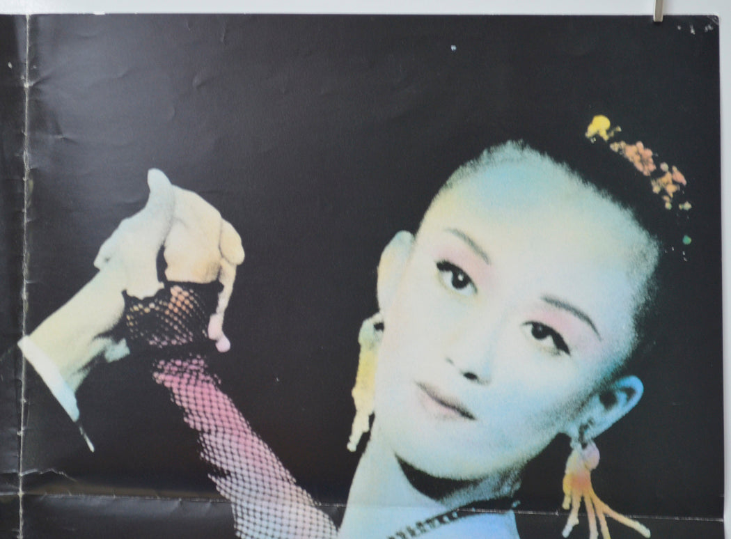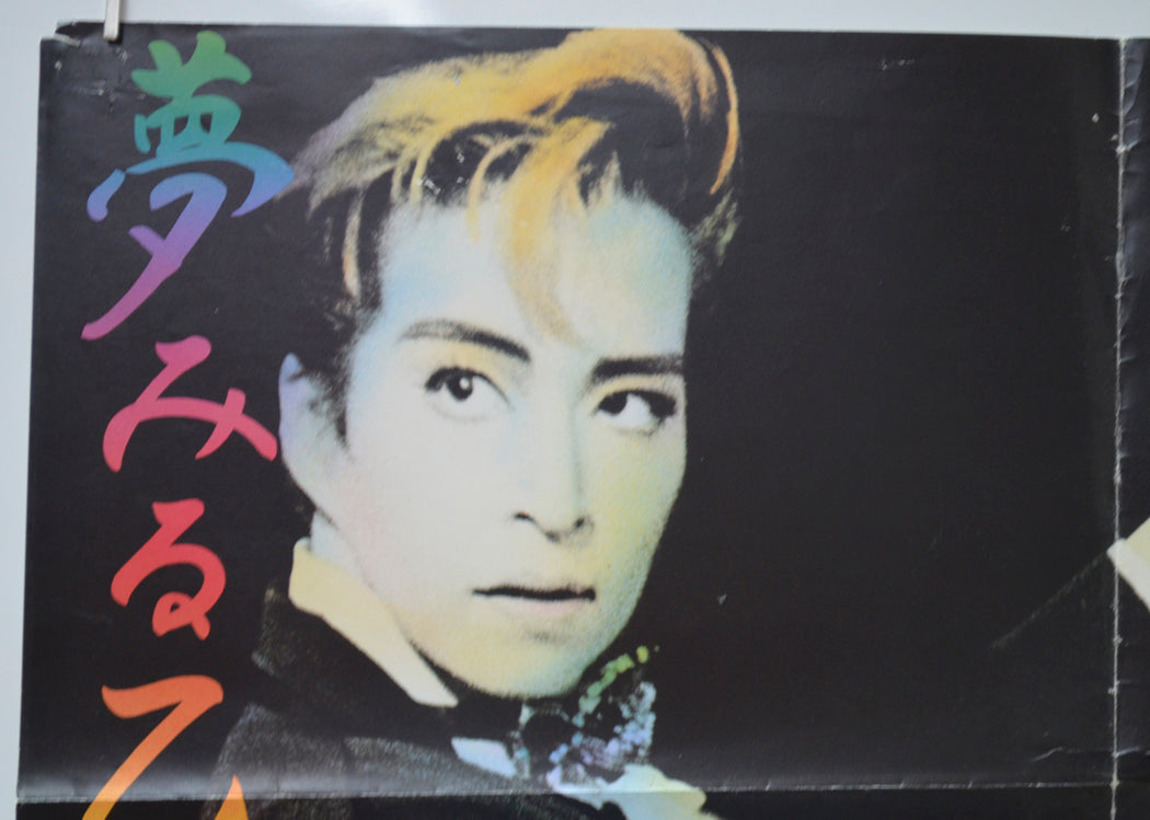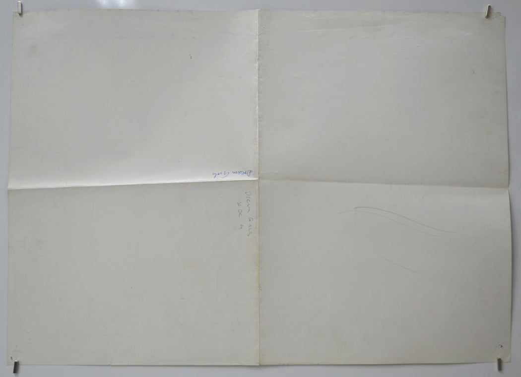 Small piece torn from the tip of the top left corner, 1 cm tear through the remainder of the top left corner, mild creasing to the tips of the other three corners, extremely mild edge wear on the top edge, two tiny tears on the right edge, 1 cm diagonal tear along with mild creasing/edge wear on the bottom edge, tiny spot of blu-tac residue just below the top edge (above the girls head), approximately 4 to 5 pinholes near every corner (some of the pinholes have torn together, especially around the bottom left corner), three pinholes near the top center, approximately 8 pinholes within the fringe/ forehead of the man, pinhole to the right of the man’s mouth, four extremely tiny pinholes within the left of the girls hair, mild fold wear (white stress marks on the fold lines), very faint horizontal crease completely across the poster (just below the top edge), small white stress mark just below the top edge (left of center), the title has been written on the back in blue pen and there are a few tiny spots of blu-tac grease/residue on the back along some light scuffs (only noticeable on the front if the poster is held up to the light / backlit), otherwise okay.