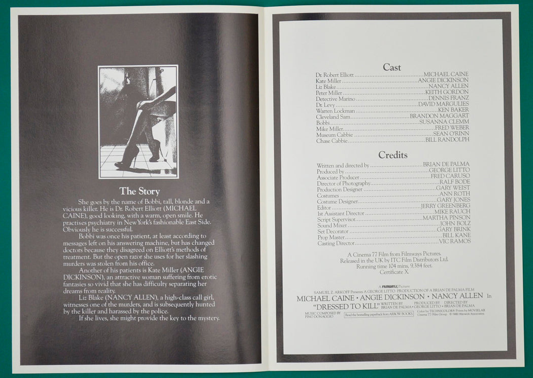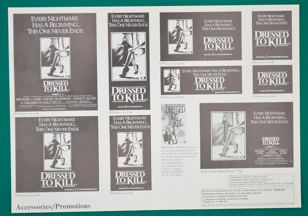 “Dressed To Kill” Original Cinema Exhibitor's Synopsis Booklet + Advertising Blocks and Accessories Sheet