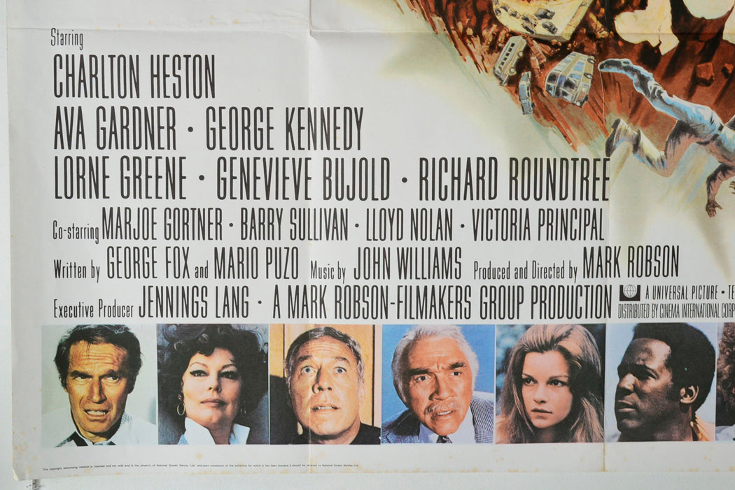 Charlton Heston, Ava Gardner, George Kennedy, Lorne Greene, Genevieve Bujold, Richard Roundtree, Marjoe Gortner, Barry Sullivan, Lloyd Nolan, Victoria Principal, Walter Matuschanskayasky, Pedro Armendariz Jr., John Randolph