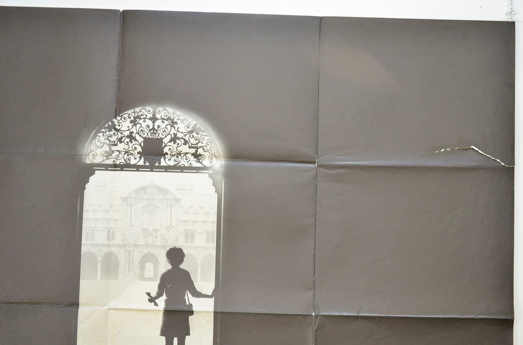 10 cm tear near the top of the right edge (has Sellotape on the back which has lightly stained through to the front and there maybe a couple of spots of print loss within the tear), 2 cm tear near the bottom of the right edge, tiny tear also on the right edge, 4 cm tear near the bottom of the left edge (has a little tape on the back of it), tiny tear on the top edge, mild fold wear including a small wear hole at the center and bottom fold intersections on the left vertical fold line plus a couple of tiny tears near the left edge of the center horizontal fold line, a few light surface creases and grubby fingermarks on the back of the poster (not noticeable on the front), otherwise good.